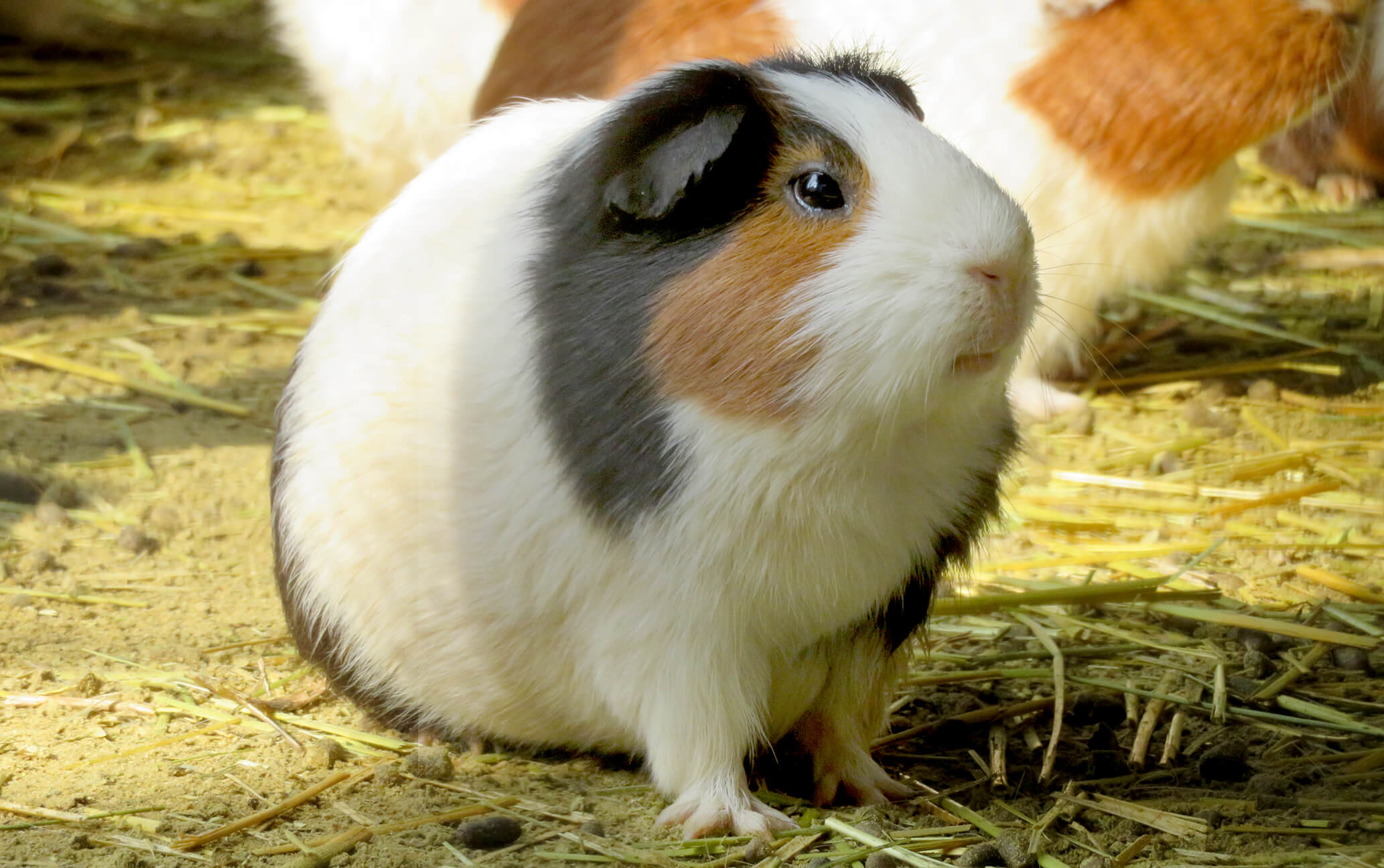 野生のものは「テンジクネズミ」と呼ばれています。紀元前1000年頃から、インディオたちによって家畜化されました。品種改良によって巻き毛や短毛種など、様々な見た目のものがいます。性格はおとなしい。