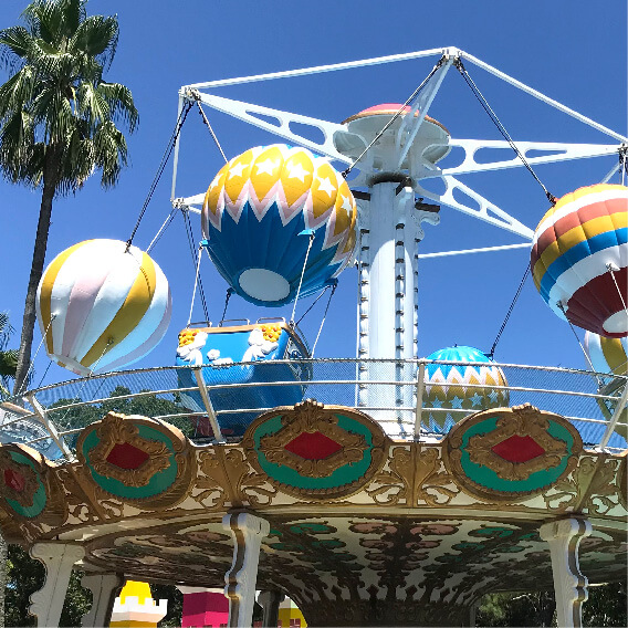 ・9機種乗り放題は、モノレール・スカイタワー・マッドマウス・ハニーハッチ・おとぎ列車・パラグライダー・スーパーダンボ・メリーゴーランド・スカイバルーンが対象です。(点検等により機種が変更になる場合があります)