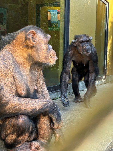 2025年10月25日、チンパンジーのユズ(♀15歳)が北海道の旭山動物園に旅立ちました。そして11月10日、旭山動物園から2頭のメスのチンパンジーが来園しました。イブは34歳、今まで4頭の出産経験があります。ニナは12歳、旭山動物園生まれです。