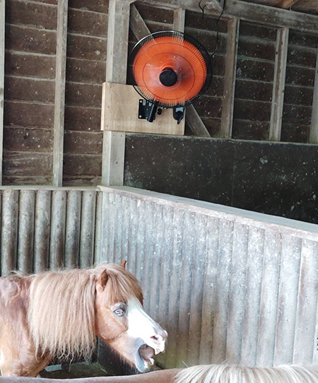 麻袋はチンパンジーの寝袋や遊び道具に、壁掛け扇風機はポニーの小屋、サーキュレーターはレッサーパンダの寝室での暑さ対策に大活躍です。