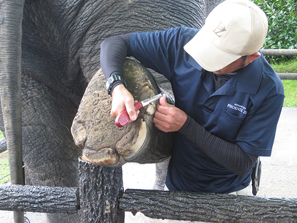 トリミングナイフはアジアゾウ「みどり」の爪のお手入れにも重宝しています。
