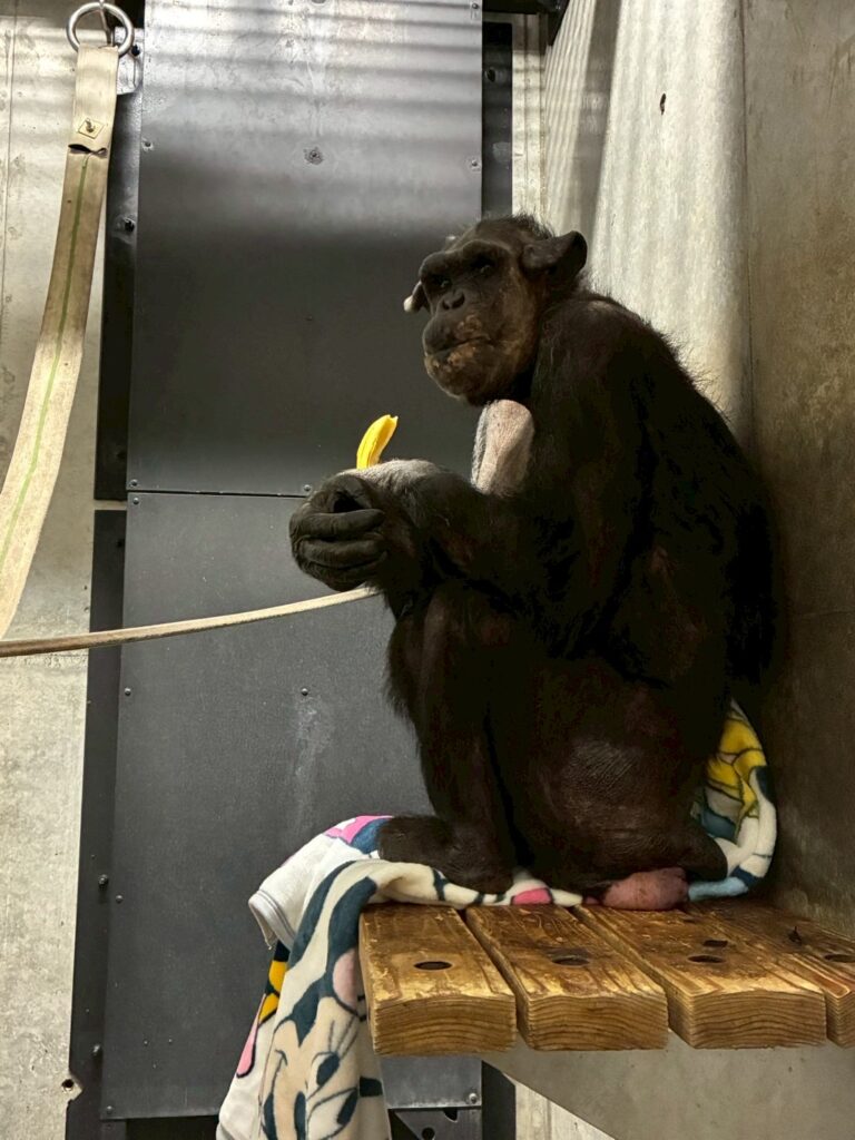 11月10日の夕方、旭山動物園よりチンパンジーの「イブ」と「ニナ」が無事に到着しました。