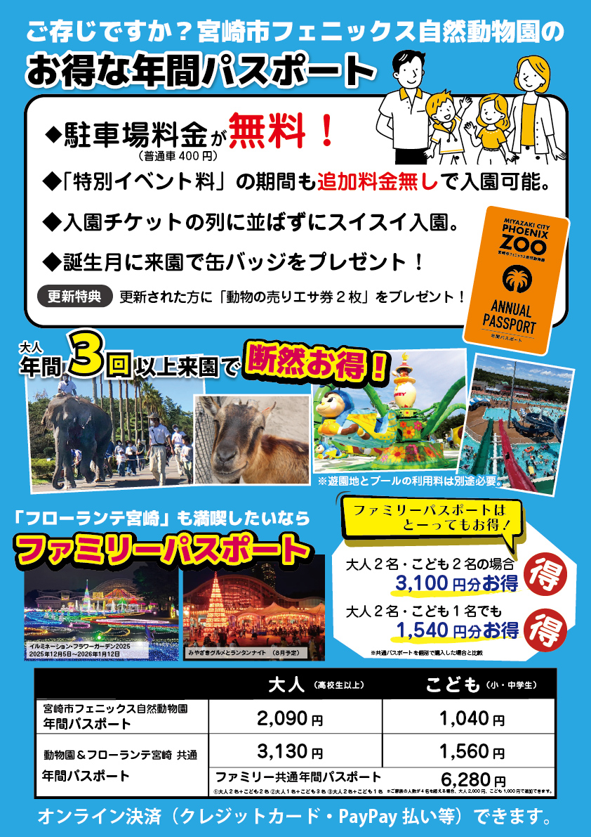 何度でも入園できるお得な「年間パスポート」をこの機会にご検討ください。
