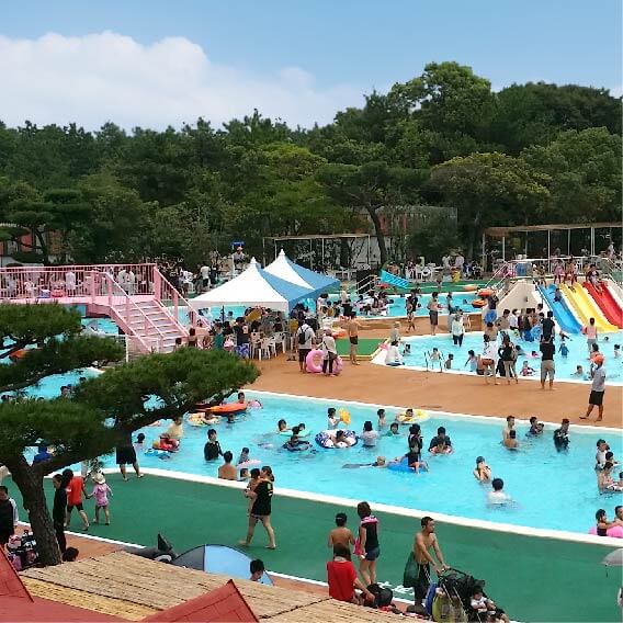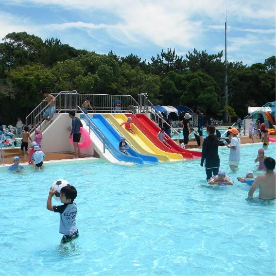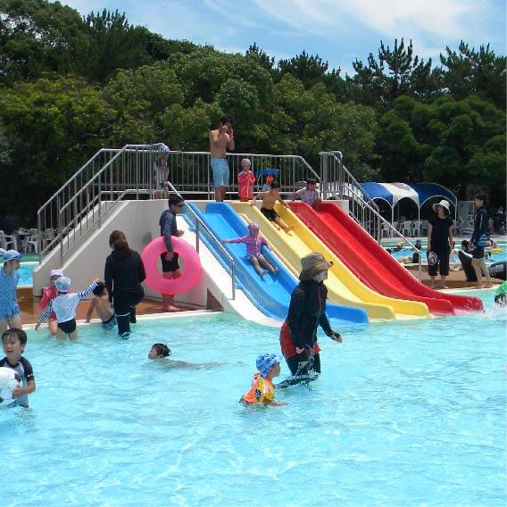 - 流れるプールは深さが110㎝あります。両足で立った状態で、顔が完全に水上に出ていないお子様は必ず保護者(大人)の方と一緒に遊泳してください。顔が出ていない小さなお子様が一人でプールの中にいたり、一人で浮き輪に乗っている場合はプールから上がっていただきます。プール内での事故やケガ等は、当園では一切責任を負いません。
